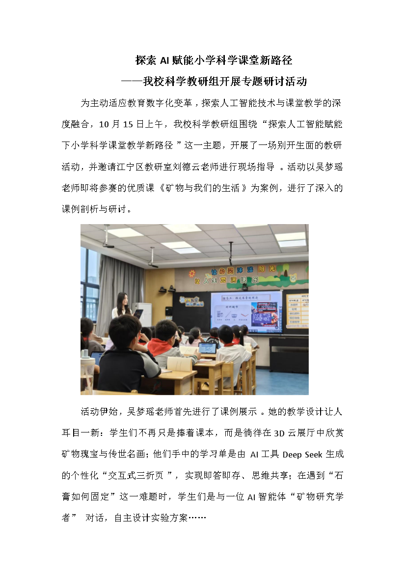 探索AI赋能小学科学课堂新路径