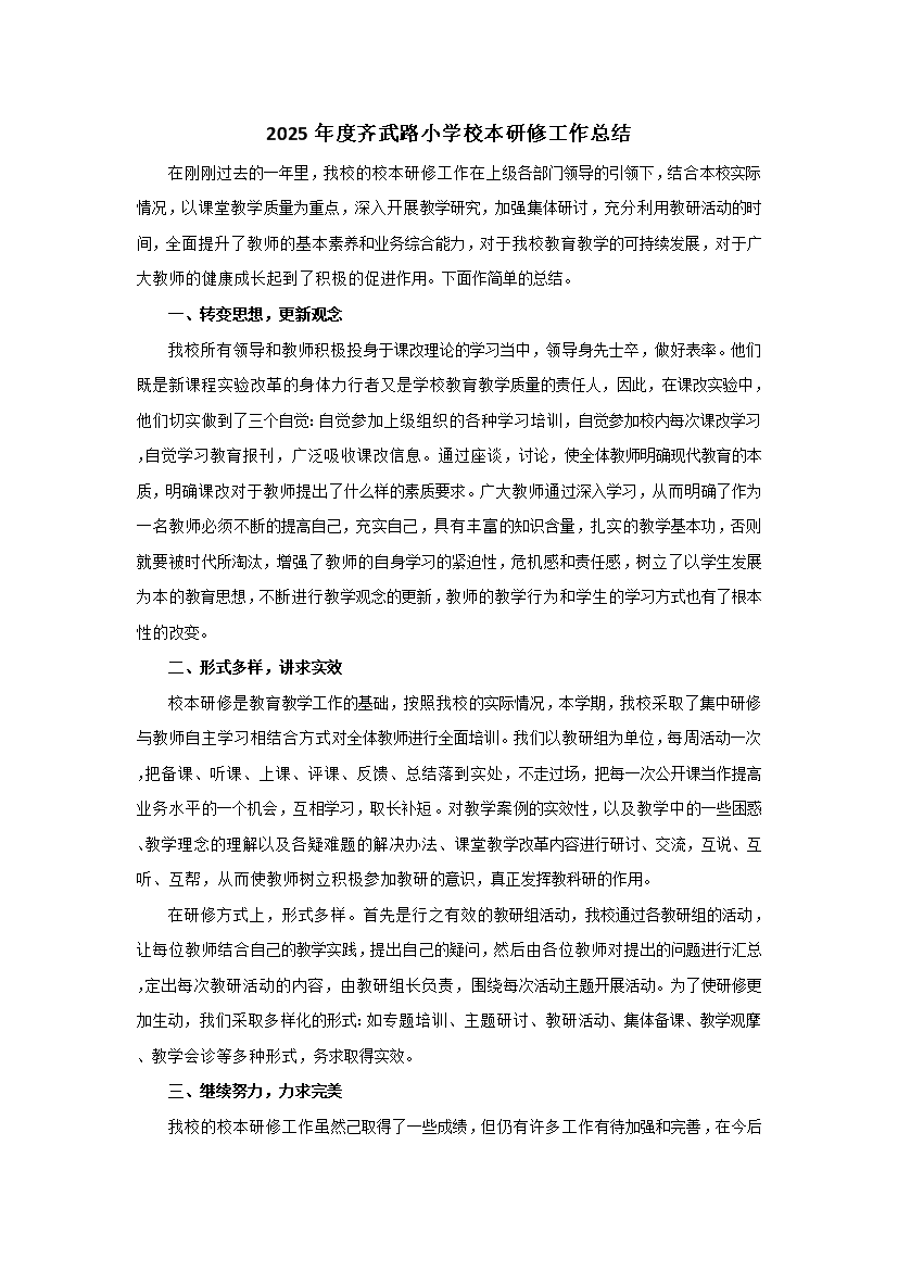 2025年度齐武路小学校本研修工作总结