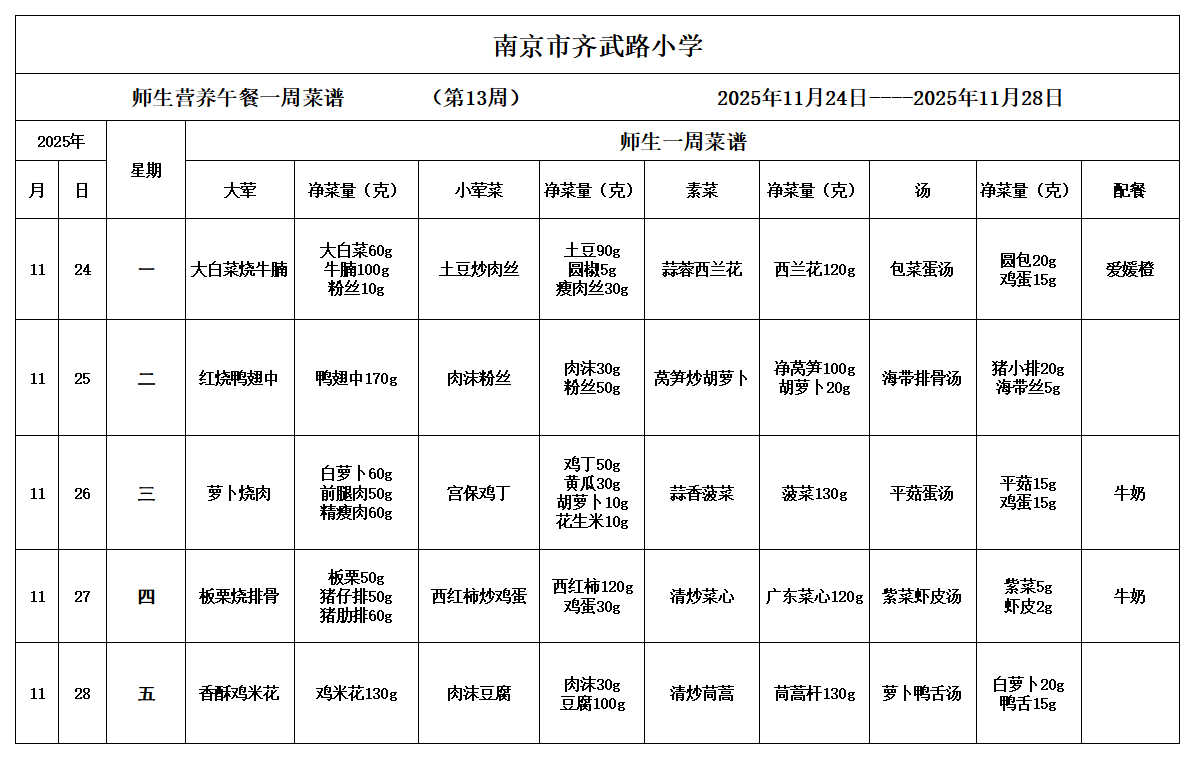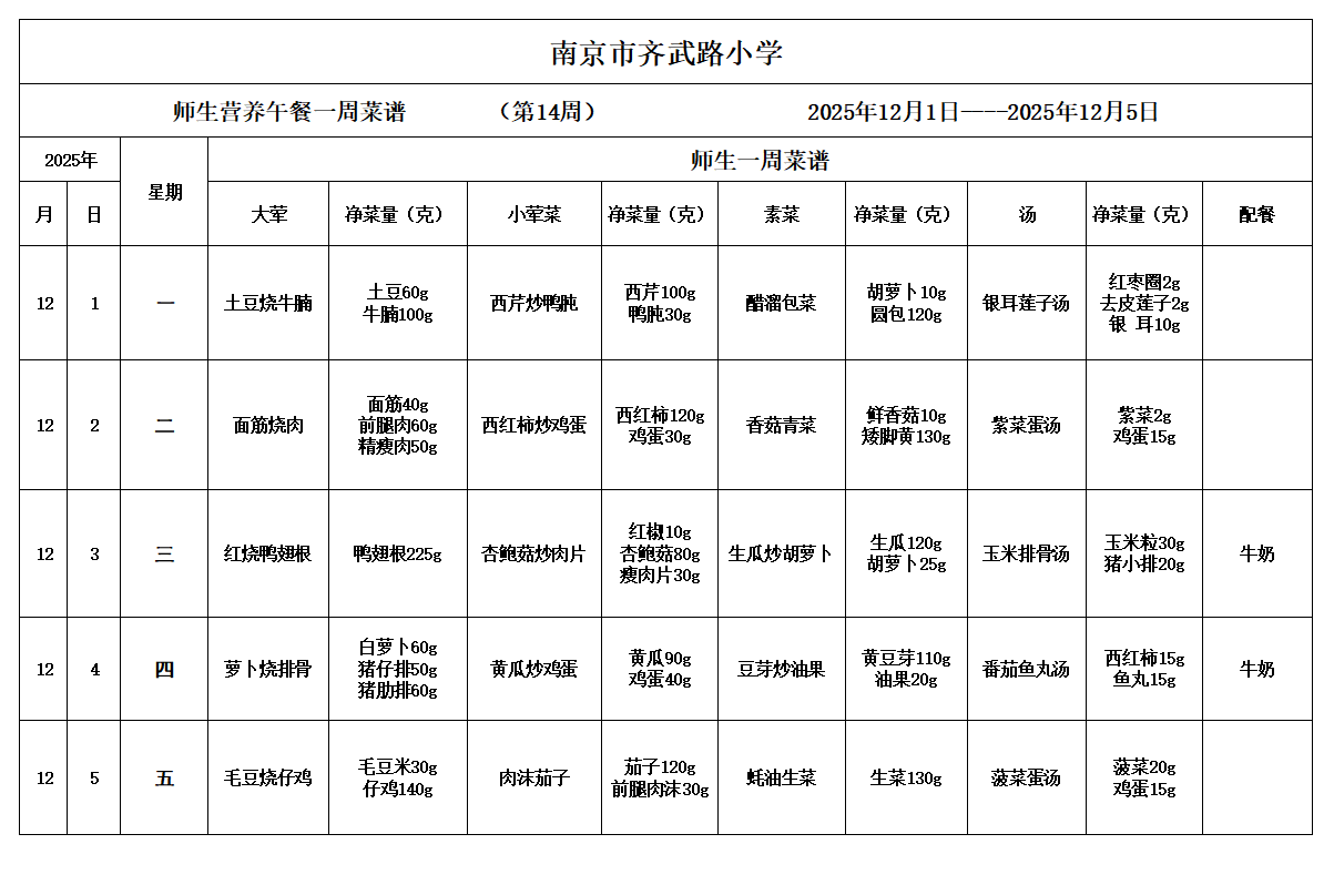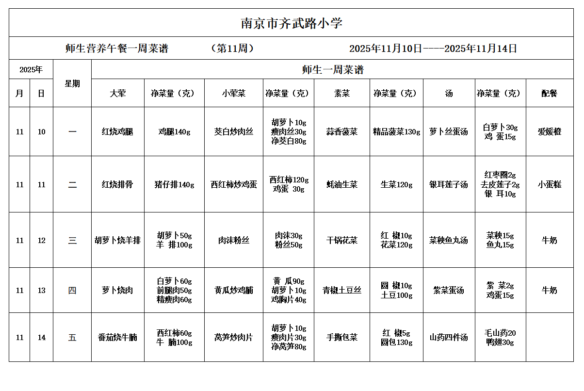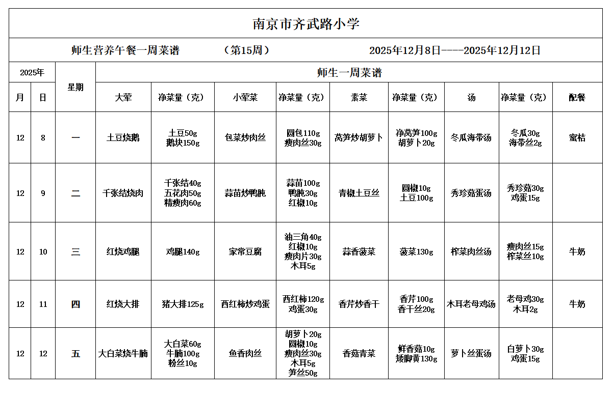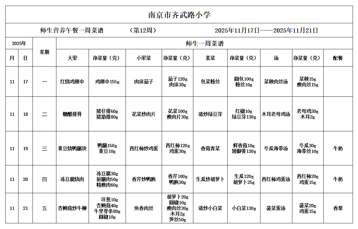 - 一周菜谱